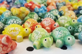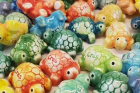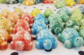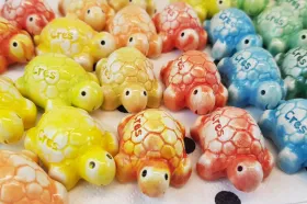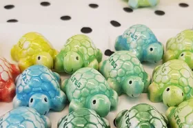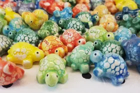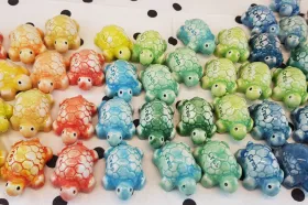 Keramičke kornjačice su bojane živim, pastelnim bojama i pravi su mamac za kupce. Lijepo ih je vidjeti i promiješati rukom, a radi načina izrade nisu ni malo krhke. Ne mogu se tako lako razbiti. Koliko god da su male, keramika su i trajni suvenir koji se ne mijenja s godinama.